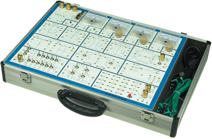 電路原理實驗箱主要是進(jìn)行電工學(xué)中的有關(guān)電路分析理論的實驗論證,屬弱電類實驗。它采用模塊式結(jié)構(gòu),各模塊間相互獨立,通過各元件區(qū)不同元件組合,可組成多種測試電路,實驗?zāi)0逭嬗∮须娐穲D,反面裝有器件,各實驗電路中需測試的點均裝有測試孔,使用方便,接觸可靠,而且壽命長、效率高,適用于進(jìn)行各種電路的實驗研究,可滿足電工原理、電路分析等課程實驗教學(xué)的需要。有電路原理基本電路。