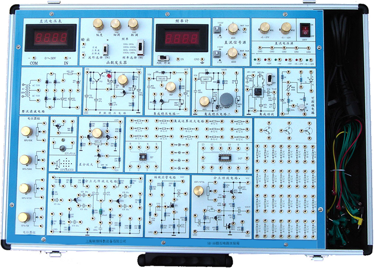 模擬電路實驗箱是根據最新的《高等工業(yè)學校電子技術基礎》教學大綱中確定的教學實驗要求為基礎,汲取了眾多專業(yè)教師的教學經驗,并綜合了眾多同類產品的優(yōu)點而設計的。它函蓋了《模擬電子技術基礎》課程全部實驗內容,既為初學者提供了驗證性實驗電路,又為課程設計提供了擴展平臺。