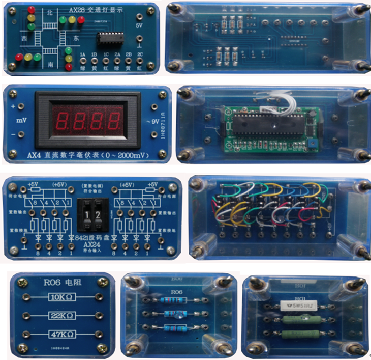 (透明電子元件模塊示例圖,共9塊板,140多只透明有機塑料封閉元件盒)
