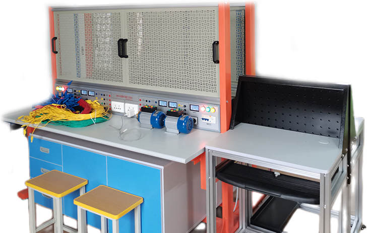 電氣安裝與調(diào)試綜合實訓(xùn)平臺由實訓(xùn)屏(內(nèi)置電源)、實訓(xùn)桌、實訓(xùn)儲物柜三大部分組成。