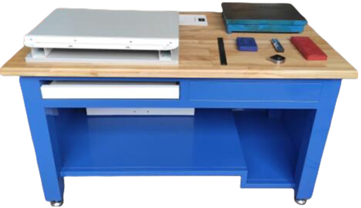 規(guī)格:1400×700×800mm,尺寸偏差±10mm(桌體靜電噴塑顏色:中藍(lán)色整體采用整裝鋼木結(jié)構(gòu),桌面為整體平整設(shè)計(jì),有幾個(gè)部分組成,可傾角的繪圖桌面,桌面右側(cè)為大理石平臺(tái)(300*400*25mm);繪圖桌面下為鍵盤(pán)抽,右支架腳板旁邊為主機(jī)托板。