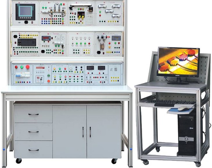 智能PLC電氣控制綜合實訓平臺、可編程邏輯控制器(又稱PLC),是基于計算機技術的通用工業(yè)控制設備。PLC集三電為一體,性價比高、可靠性高,已成為自動化工程的核心設備,目前已被廣泛應用到機械制造、冶金、電子、化工、交通、紡織、印刷、食品、建筑等諸多領域。目前市場上應用的可編程控制器有三菱、西門子、歐姆龍、松下等幾大品牌,其中西門子系列PLC的功能齊全、運行可靠,在自動控制領域內使用較多。