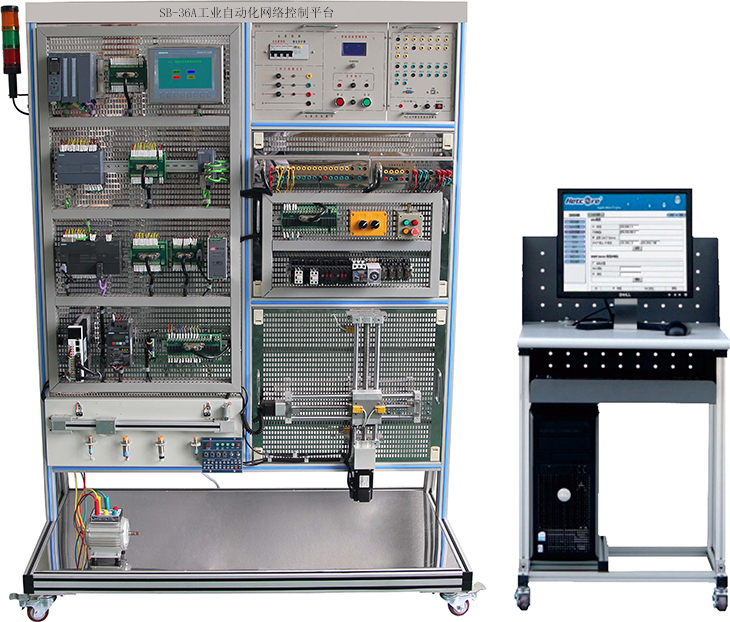 工業(yè)自動化網(wǎng)絡(luò)控制實訓(xùn)平臺,工業(yè)控制網(wǎng)絡(luò)是近年來發(fā)展形成的自動控制領(lǐng)域的網(wǎng)絡(luò)技術(shù),是計算機(jī)技術(shù)、通信技術(shù)與自動控制技術(shù)相結(jié)合的產(chǎn)物,其主要包括現(xiàn)場總線技術(shù)和工業(yè)以太網(wǎng)技術(shù)。為了使院校自動化專業(yè)的學(xué)生能夠加深對工業(yè)控制網(wǎng)絡(luò)的理解,直接接觸和操作先進(jìn)的工業(yè)控制設(shè)備,熟悉工業(yè)現(xiàn)場總線的原理和運(yùn)行機(jī)制,使之走上工作崗位后能立即參與解決工程實際問題,我們研制了一套工業(yè)控制網(wǎng)絡(luò)綜合實驗系統(tǒng)。該實驗系統(tǒng)模擬工業(yè)現(xiàn)場實際情況,通過PROFIBUS總線和工業(yè)以太網(wǎng),建立主從站通信系統(tǒng),實現(xiàn)各類傳感器的實時數(shù)據(jù)采集和遠(yuǎn)程監(jiān)控。同時,該實驗平臺還可以為現(xiàn)場總線技術(shù)、工業(yè)自動化與控制網(wǎng)絡(luò)、集散控制系統(tǒng)、工業(yè)自動化系統(tǒng)課程設(shè)計、過程控制等專業(yè)課程服務(wù)。