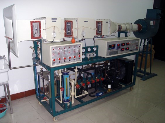 空調(diào)制冷換熱綜合實(shí)驗(yàn)設(shè)備集直流空調(diào),制冷壓縮機(jī)性能,制冷熱泵,表冷器性能,加熱器性能于一體,可進(jìn)行空氣的加熱,加濕,冷卻,干燥,蒸發(fā)器,冷凝器進(jìn)行換相,可測出各點(diǎn)溫度、濕度、壓力、風(fēng)量、水流量及功率,計(jì)算出制冷量、功率、制冷系數(shù)、效率、并進(jìn)行熱平衡計(jì)算。