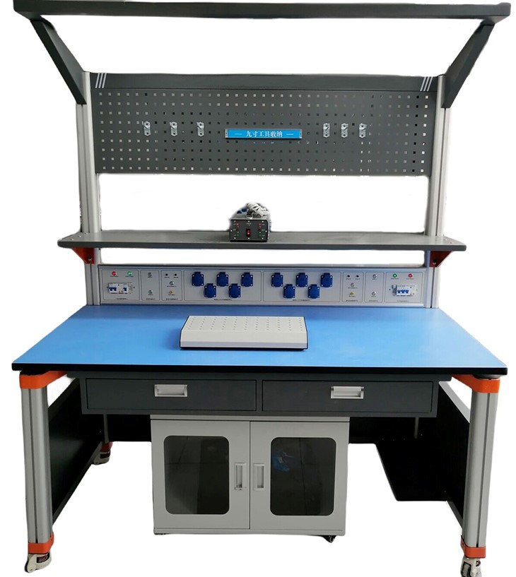 三、功能特點(diǎn):該設(shè)備主要由工作臺(tái)、實(shí)訓(xùn)屏、工具柜、電路實(shí)訓(xùn)模塊
