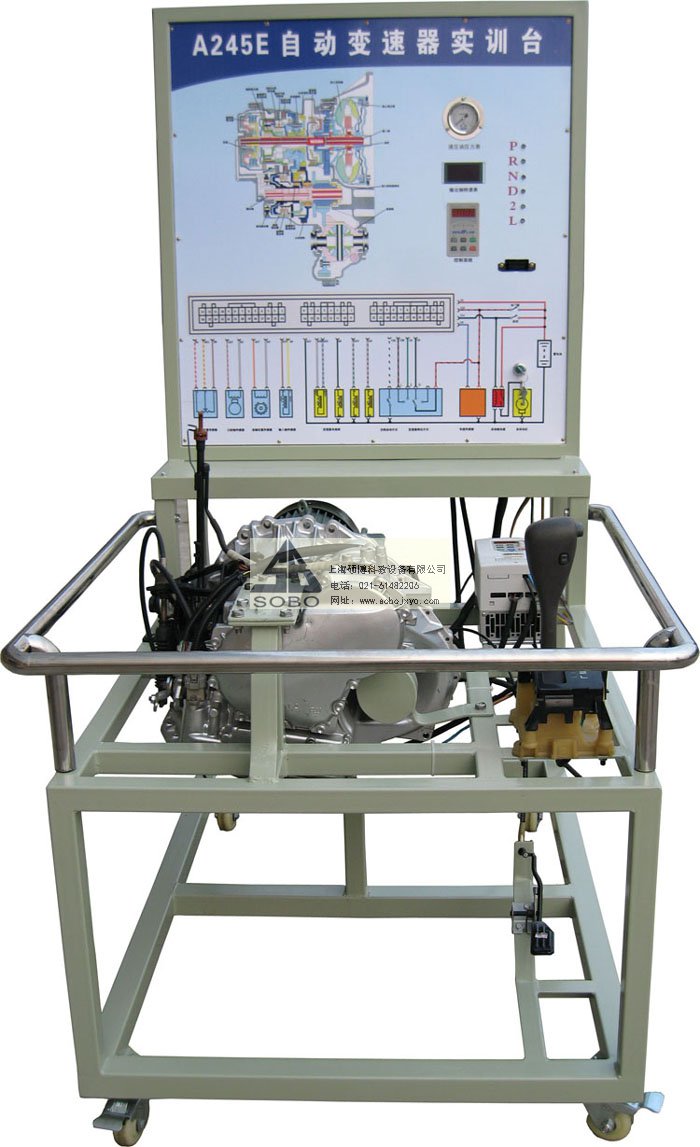 本變速器實(shí)訓(xùn)臺(tái)是本公司采用一汽豐田自花冠動(dòng)變速器為適應(yīng)汽車教學(xué)需求而研制的,該實(shí)訓(xùn)臺(tái)由電控變速器(八成新)、操作顯示面板及發(fā)動(dòng)機(jī)彩色電氣原理圖電腦控制柜、可移動(dòng)式臺(tái)架(萬(wàn)向腳輪)、驅(qū)動(dòng)系統(tǒng)(腳踏式油門踏板)變頻電機(jī)驅(qū)動(dòng)、剎車系統(tǒng)(腳踏液壓盤試剎車)、啟動(dòng)系統(tǒng)(電門鎖方式啟動(dòng))、車速傳感器、電磁閥執(zhí)行器、原車電腦、具有發(fā)動(dòng)機(jī)運(yùn)轉(zhuǎn)及顯示(轉(zhuǎn)速.車速.檔位)、液壓油壓力顯示表(顯示換檔過(guò)程油壓)、自動(dòng)變速器電磁閥工作指示LED燈、原車OBD-Ⅱ診斷座、故障設(shè)置區(qū)可設(shè)置12路故障(老師設(shè)置任一路線路故障)、故障排除區(qū)(學(xué)生通過(guò)各種儀器、儀表、)在面板上用專用排故線連接排除故障、傳感器信號(hào)模擬等多項(xiàng)功能、具結(jié)構(gòu)緊湊、操作方便、安全可靠、教學(xué)直觀、是汽車自動(dòng)變速器實(shí)物教學(xué)不可缺少的實(shí)驗(yàn)室設(shè)備之一。