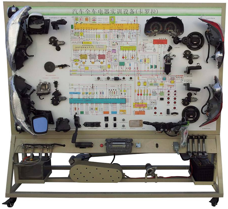 汽車電氣設(shè)備實(shí)訓(xùn)室。汽車電器設(shè)備實(shí)訓(xùn)室包含有汽車燈光系統(tǒng)、車載網(wǎng)絡(luò)系統(tǒng)、全車電器系統(tǒng)、汽車啟動(dòng)系統(tǒng)、汽車空調(diào)系統(tǒng)、全車線路試驗(yàn)臺、等實(shí)訓(xùn)教學(xué)設(shè)備。該實(shí)訓(xùn)室可以承擔(dān)《汽車構(gòu)造》、《汽車電器設(shè)備》、《汽車電控系統(tǒng)》、《汽車檢測與診斷》等課程的實(shí)踐教學(xué)任務(wù)?梢杂糜谘芯、分析全車電器系統(tǒng)、燈光系統(tǒng)、儀表系統(tǒng)等電器設(shè)備的電路及功能。利用這些系統(tǒng)進(jìn)行實(shí)踐教學(xué),使學(xué)生熟悉汽車電器的結(jié)構(gòu)和工作原理,掌握各個(gè)系統(tǒng)的基本組成電路,掌握主要電路的檢測方法和系統(tǒng)的故障特征,從而具有一定的檢測和調(diào)校能力。