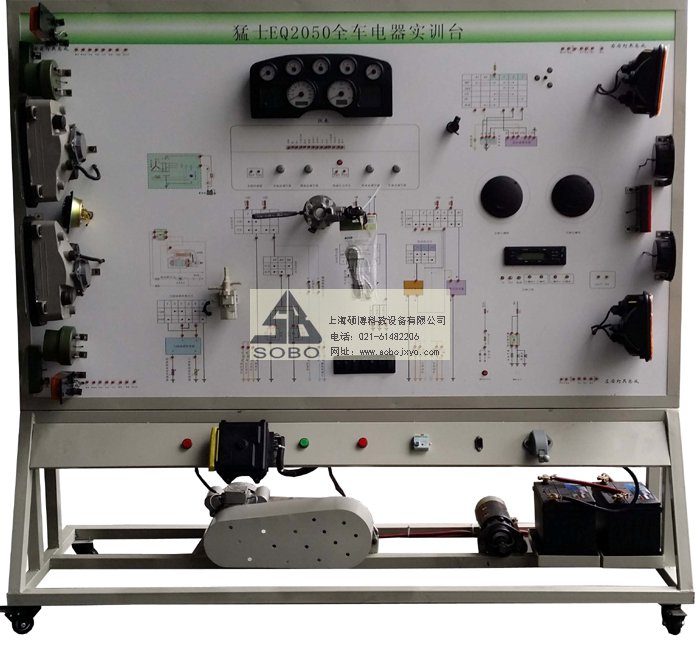 該設(shè)備采用全新EQ2050整車電器實(shí)物為基礎(chǔ),充分展示 柴油機(jī)汽車儀表系統(tǒng)、燈光系統(tǒng)、雨刮系統(tǒng)、喇叭系統(tǒng)、發(fā)動機(jī)電器系統(tǒng)、起動系統(tǒng)和充電系統(tǒng)等汽車電器各系統(tǒng)的組成結(jié)構(gòu)和工作過程。