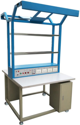 實(shí)訓(xùn)臺(tái)上提供日光燈(用于照明)2個(gè),透明的PVC板4個(gè),可夾放原理圖等資料,另外還配備三芯雙聯(lián)暗插座4個(gè)、兩芯暗插座2個(gè)、工具柜2個(gè),工作臺(tái)面設(shè)有綠色防靜電桌墊,整個(gè)裝配線安全可靠。
