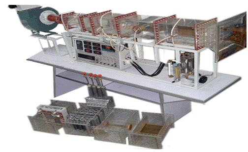 風(fēng)機(jī),自動(dòng)調(diào)節(jié)風(fēng)門,組合式有機(jī)玻璃風(fēng)洞,有機(jī)玻璃實(shí)驗(yàn)管段,有機(jī)玻璃叉排、順排實(shí)驗(yàn)段,旋轉(zhuǎn)圓柱試件,紫銅平板試件,穩(wěn)壓電源配電位器調(diào)節(jié)加熱功率,電流表,電壓表,畢托管及差壓傳感器,PT100熱電阻測溫,巡檢儀顯示溫度、阻力、流量,不銹鋼臺(tái)架等。