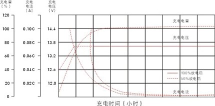 鉛酸蓄電池要求采用限流恒壓的充電方法進行充電。在環(huán)境度為25℃的條件下,最佳的浮充電壓為13.6±0.1V 臺X臺數(shù),充電開始時的電流應(yīng)限制在0.25C10A的范圍內(nèi)。