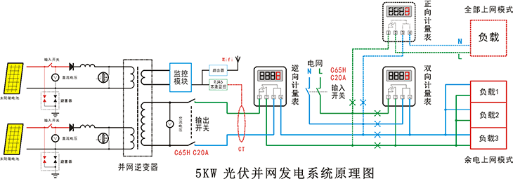 在晴朗的白天,裝在屋頂上的光伏組件發(fā)出的直流電經(jīng)過并網(wǎng)逆變器逆變成與電網(wǎng)同頻率同相位的單相交流電給負載進行供電,在夜晚或陰雨天等太陽光照不足的情況下,系統(tǒng)處于待機狀態(tài),負載用電全部來自電網(wǎng)。您可以通過系統(tǒng)監(jiān)控軟件來實時查看系統(tǒng)的運行狀態(tài)和故障信息,或者是選配遠程通訊數(shù)據(jù)采集器,將系統(tǒng)工作數(shù)據(jù)通過GPRS或以太網(wǎng),傳輸?shù)侥氖謾C、平板電腦或任意一臺聯(lián)網(wǎng)的電腦,以便于您遠程實時掌控電站的信息。