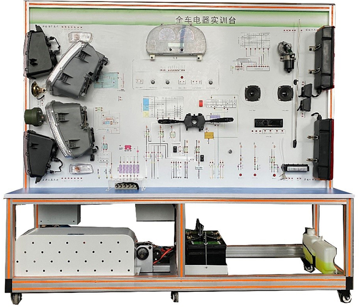 在車(chē)身電器基礎(chǔ)上,配備各相關(guān)輔助控制裝置,可如原車(chē)一樣實(shí)際工作。在操縱實(shí)訓(xùn)臺(tái)上的各種電器開(kāi)關(guān)、按紐,真實(shí)演示汽車(chē)燈光系統(tǒng)、照明系統(tǒng)、儀表系統(tǒng)、雨刮系統(tǒng)、點(diǎn)火系統(tǒng)、起動(dòng)系統(tǒng)、充電系統(tǒng)、音響系統(tǒng)的工作過(guò)程。