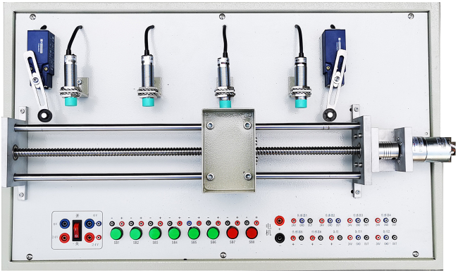 主要由運(yùn)動(dòng)小車(chē)(直流電機(jī)驅(qū)動(dòng))、同步帶輪傳動(dòng)機(jī)構(gòu)、直流電機(jī)、光電傳感器、電感式傳感器、電容式傳感器、行程開(kāi)關(guān)等組成,通過(guò)傳感檢測(cè)、PLC編程,實(shí)現(xiàn)運(yùn)動(dòng)距離測(cè)量、傳動(dòng)控制、定向控制、定位控制、報(bào)警運(yùn)行控制、點(diǎn)動(dòng)控制、位置顯示控制等,能實(shí)現(xiàn)小車(chē)的精確定位。該系統(tǒng)外觀精美,體積緊湊,重量輕。