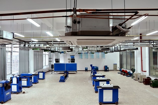 3.組合式空調(diào)機組、新風(fēng)機組、風(fēng)機盤管、冷卻塔、風(fēng)機、消聲器、多聯(lián)機、滾剪機、咬口機、卷圓機、合縫機等主要設(shè)備,組成一次回風(fēng)式空調(diào)系統(tǒng)、新風(fēng)加風(fēng)機盤管空調(diào)系統(tǒng)、排風(fēng)系統(tǒng)、多聯(lián)機空調(diào)系統(tǒng)等四個系統(tǒng),可以承擔(dān)組合式空調(diào)機組安裝、冷卻塔安裝、新風(fēng)機組安裝、風(fēng)機盤管安裝、風(fēng)機安裝、多聯(lián)機安裝、風(fēng)口安裝、風(fēng)管制作等8個實訓(xùn)項目。