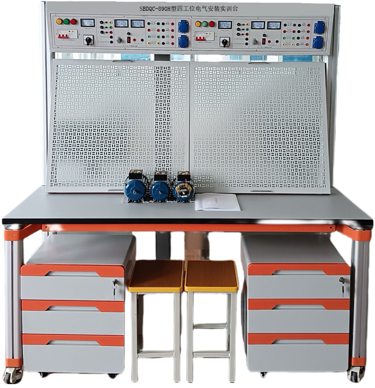 四工位電氣安裝實(shí)訓(xùn)臺由實(shí)訓(xùn)屏(內(nèi)置電源)、實(shí)訓(xùn)桌、實(shí)訓(xùn)儲物柜三大部分組成。