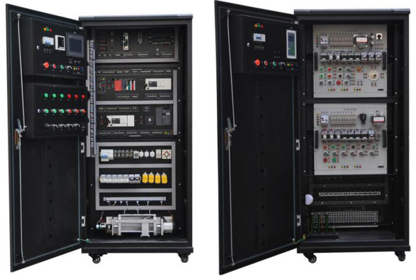 1.本裝置是由控制柜、受控對象等組成一個完整系統(tǒng),具有占地面積小、操作方便、可移動、內(nèi)部安裝有照明設(shè)施、操作面板,各控制點(diǎn)和通訊接口均引出到專用的接線板上,使實(shí)訓(xùn)更加便捷。