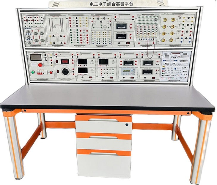 三、電子電工實訓臺主要配置及功能:電工電子實驗平臺由實驗桌、實驗臺架、存儲柜、實驗掛箱組件、配件等組成。
