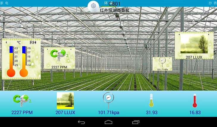 3、環(huán)境檢測系統(tǒng):通過二氧化碳傳感器、大氣壓力傳感器、光照強(qiáng)度傳感器、溫濕度傳感器,配合智能網(wǎng)關(guān)環(huán)境檢測系統(tǒng)軟件,實(shí)現(xiàn)農(nóng)業(yè)大棚環(huán)境檢測系統(tǒng)等物聯(lián)網(wǎng)綜合應(yīng)用系統(tǒng)。