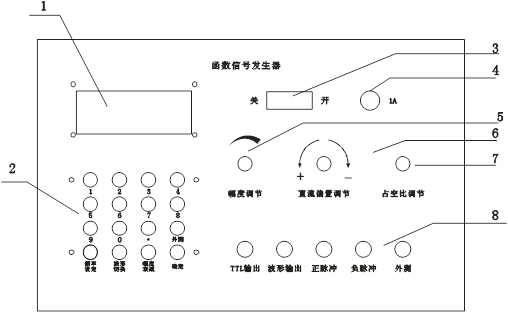 3)、電源開(kāi)關(guān),控制函數(shù)信號(hào)發(fā)生器的工作電源。