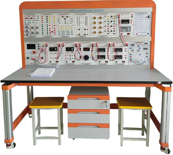 電工電子實驗平臺由實驗桌、實驗臺架、存儲柜、實驗掛箱組件、配件等組成。