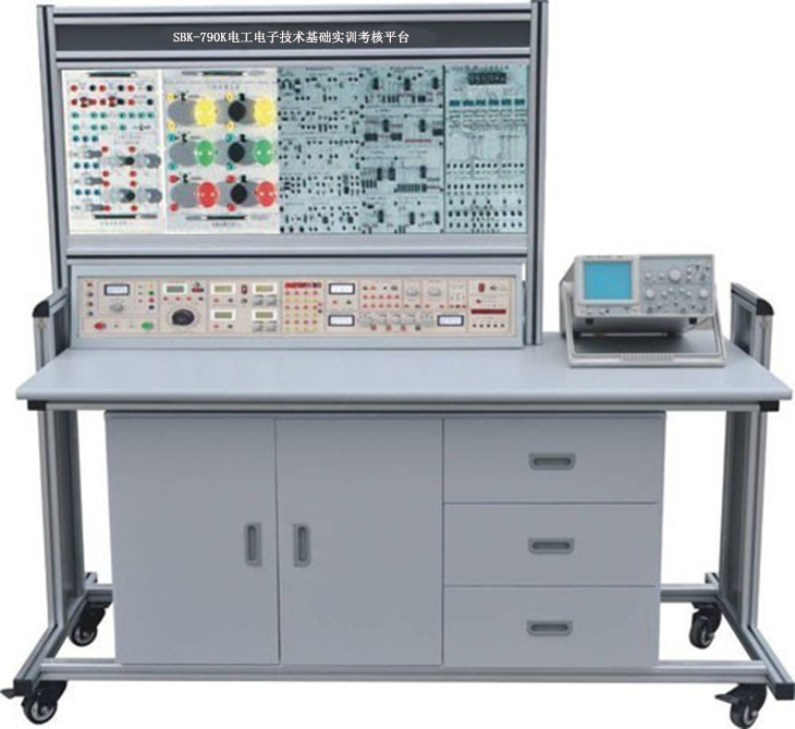 實訓屏為鐵質(zhì)雙層亞光密紋噴塑結構,鋁質(zhì)面板,為實訓掛箱提供交流電源、直流穩(wěn)壓電源、恒流源、函數(shù)信號發(fā)生器、測試儀表及實訓器件等,具體功能如下: