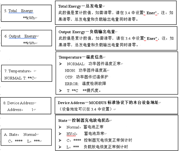 Ø 系統(tǒng)工作狀況、蓄電池的剩余電量等的變化;