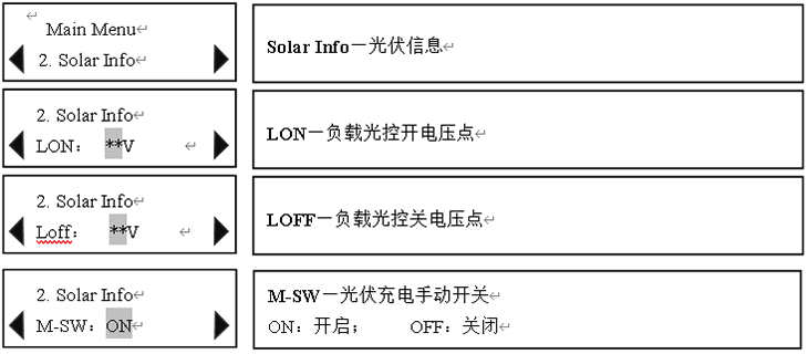 Ø 負(fù)載輸出開關(guān)功能在控制器上用戶可以手動設(shè)置負(fù)載端的打開或關(guān)閉。
