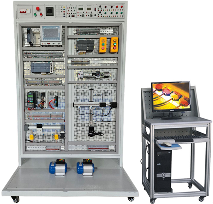 實訓(xùn)裝置由S7-1500單元、S7-1200單元、S7-200SMART單元、變頻調(diào)速單元、小車運動控制單元、、實訓(xùn)組件、電工基礎(chǔ)實訓(xùn)單元二維絲桿控制單元、觸摸屏單元、以太網(wǎng)交換機、交流電機等組成。