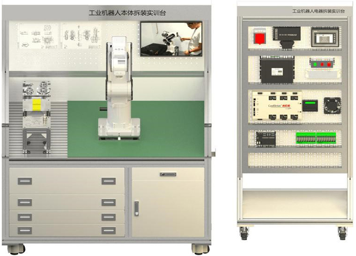 把工業(yè)級的機器人電氣柜的大部件拆散安裝在網孔架上,清晰體現機器人電氣連接原理。
