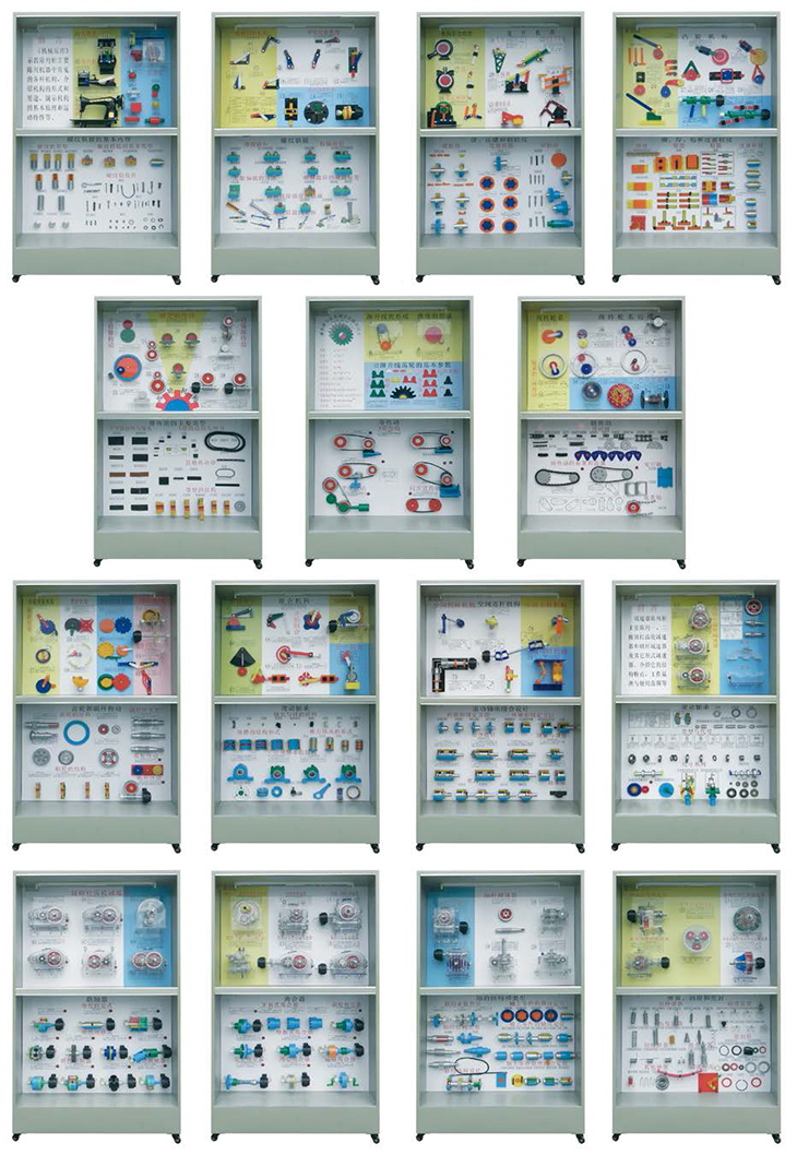 機械綜合陳列柜,該設備是根據大中專院校、職業(yè)學校的教學大綱設計的多功能機械綜合示教室是一套《機械原理》、《機械零件》、《減速器》共500余種模型,分三大類合并成的電化教學設備。共15個柜,30個板面。該設備采用新型觸摸液晶屏電腦控制主控臺。mpc解說,觸摸屏、遙控控制,聲控同步循環(huán)播放進行演示;又根據教材,教學需要而任意選擇單獨運轉演示。本產品的特點:使作方便,占地面積小,結構新穎實用,制作工藝更加美觀,整套設備演示形象逼真,運行可靠,有效的提升了教學生動性、趣味性及產品壽命。是一套現(xiàn)代化的機械課程示教室設備。