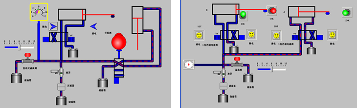 五、通過(guò)組態(tài)仿真畫面演示及控制的液壓回路示列