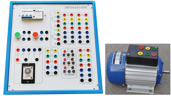 該任務(wù)盒有1.2mm優(yōu)質(zhì)鋼板加工噴涂制作,面板有鋁板加工沖孔而成,表面貼膜制作,內(nèi)置交流接觸器、中間繼電器、時間繼電器、斷路器、按鈕等,通過迭插端子與外部教具電機連接,滿足電機的多種教學(xué)目的,方便靈活。