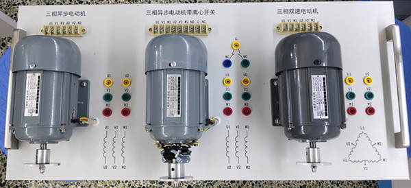 配置三種電機,電機引線通過端子和強電插座2種方式引出到底板,實現(xiàn)不同的接線方式。電機配有電機轉(zhuǎn)盤,底板配有拉絲色把手。