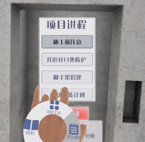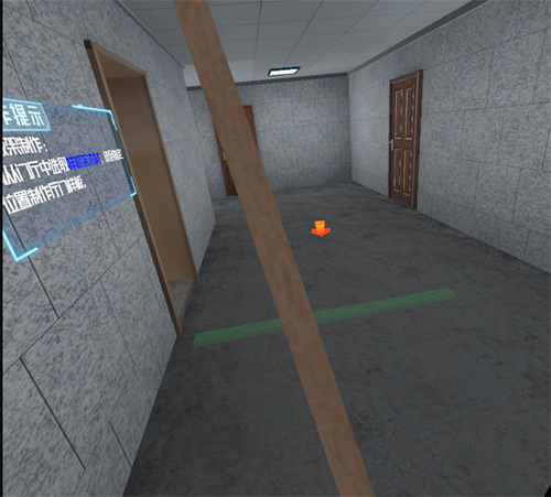 系統(tǒng)可以根據(jù)頭顯的定位和角度變換來(lái)進(jìn)行全場(chǎng)景的展示,在場(chǎng)景中可以體驗(yàn)真實(shí)的施工環(huán)境和相對(duì)應(yīng)的施工過(guò)程,增加沉浸感和體驗(yàn)度。