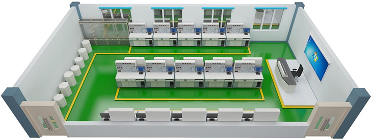 實(shí)訓(xùn)屏部分:采用優(yōu)質(zhì)鋼板斜面設(shè)計(jì)精加工,面板采用優(yōu)質(zhì)鋁板,彩色噴繪工藝,顏色協(xié)調(diào)、設(shè)計(jì)合理。主控電源、主控器材、控制電源等布局科學(xué)操作方便。