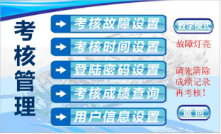 1)該系統(tǒng)由安卓藍牙的故障設置系統(tǒng)和觸摸屏的故障考核系統(tǒng)兩部分組成。教師在講課時,用帶安卓系統(tǒng)的手機或平板電腦遠程無線設置故障,遠程啟動、停止教學設備,方便教師教學講課。學生考核是在觸摸屏故障考核系統(tǒng)上完成的。教師和學生界面分開,教師輸入密碼進入教師界面出題并設置考試時間啟用后,學生才能開始考核。教師界面故障類型為斷路故障、虛接故障、短路故障三種,教師可任意出題,設置故障后,屏幕上按鈕會由綠色變?yōu)榧t色,同時繼電器板動作,設備產(chǎn)生故障。學生在答題界面會顯示學號、剩余時間、故障總數(shù),學生在設備上檢測查出故障后,選擇相應的故障按鈕,屏幕上按鈕會由紅色變綠色,故障選擇完畢后,點擊提交試卷后,就會看到本次考試成績。
