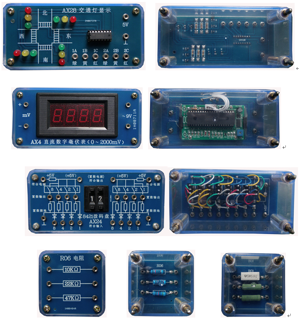 (透明電子元件模塊示例圖,共9塊板,140多只透明有機(jī)塑料封閉元件盒)