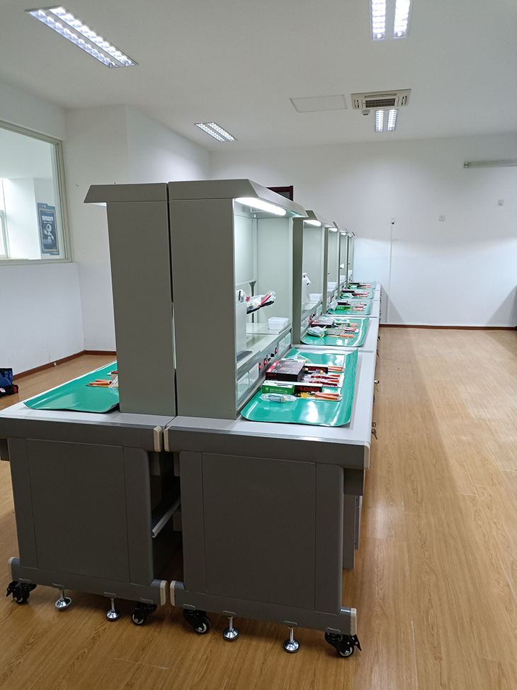 3.經濟性此實訓臺為2人座,裝有照明日光燈、看板(用來夾資料)、儀表臺、插座,2個抽屜。學生在這里可以仿真生產過程(如:工藝流程的編制、線路板的焊接、線路板的調試、整體產品的組裝),組裝后的裝配線安全、可防靜電。