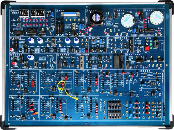 6、運(yùn)算模擬單元:提供8個(gè)OP07基本運(yùn)放模擬單元(實(shí)驗(yàn)用),每單元的輸入回路有6組0.5%精度電阻、或 5%精度電容,反饋回路有7組0.5%精度電阻、或5%精度電容,和1個(gè)運(yùn)算放大器組成。另有擴(kuò)展運(yùn)放模擬單元,其一可調(diào)零放大器,構(gòu)成比例環(huán)節(jié)、慣性環(huán)節(jié)、積分環(huán)節(jié)、比例微分環(huán)節(jié),PID環(huán)節(jié)和典型的二階、三階系統(tǒng)等;其二校正網(wǎng)絡(luò)庫,可構(gòu)成各種校正環(huán)節(jié);其三是2組整形模塊。