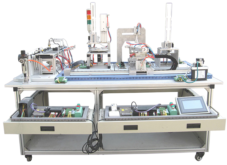 光機電氣一體化控制實訓(xùn)平臺由由鋁合金導(dǎo)軌式實訓(xùn)臺、典型的機電一體化設(shè)備的機械部件、PLC模塊、變頻器模塊、按鈕模塊、電源模塊、模擬生產(chǎn)設(shè)備實訓(xùn)模塊、接線端子排和各種傳感器、計算機等組成。整體結(jié)構(gòu)采用開放式和拆裝式,實訓(xùn)裝置用于機械部件組裝,可根據(jù)現(xiàn)有的機械部件組裝生產(chǎn)設(shè)備,也可添加機械部件組裝其他生產(chǎn)設(shè)備,使整個裝置能夠靈活的按教學(xué)或競賽要求組裝具有生產(chǎn)功能的機電一體化設(shè)備。模塊采用標(biāo)準(zhǔn)結(jié)構(gòu)和抽屜式模塊放置架,互換性強;按具有生產(chǎn)性功能和整合學(xué)習(xí)功能的原則確定模塊內(nèi)容,使教學(xué)或競賽時可方便的選擇需要的模塊。設(shè)備需完全符合電工電子全國職業(yè)技能大賽所要求,同時還要求具有可拓展功能,可以組成更加大型的生產(chǎn)模擬系統(tǒng),以配合各個用戶學(xué)校不同層次,不同專業(yè)的教學(xué)及培訓(xùn)要求。
