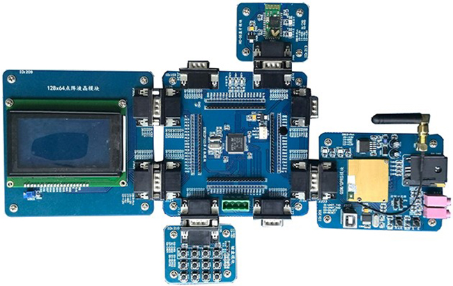 用于通信技術(shù)實(shí)訓(xùn)課程。根據(jù)實(shí)用課題內(nèi)容,讓學(xué)生自己了解通信過(guò)程,自己調(diào)試,最終完成一個(gè)具有實(shí)際功能且具有實(shí)用價(jià)值的產(chǎn)品模型。如:搭建基于GSM模塊、鍵盤(pán)模塊和LCD模塊實(shí)現(xiàn)一個(gè)簡(jiǎn)單的實(shí)用手機(jī)系統(tǒng)。
