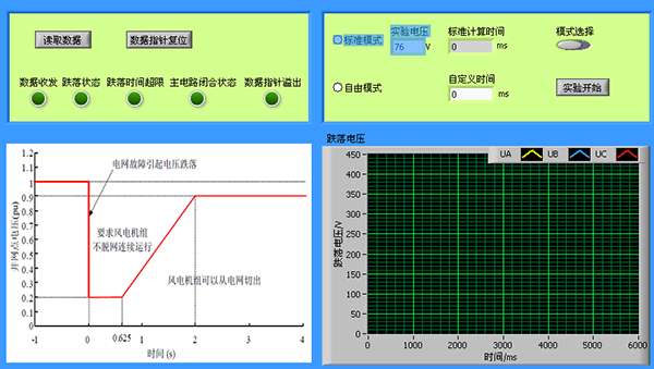 Ø背靠背變流器可實現(xiàn)直流側電壓的初始狀態(tài)進行設定,實現(xiàn)單位功率因數(shù)并網(wǎng),實現(xiàn)風力發(fā)電機在故障條件下不Ø脫網(wǎng)運行,低電壓穿越的功能,支持風機的低電壓穿越實驗;