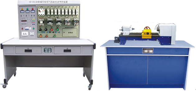 C6140普通車床電氣技能實訓考核裝置由電源控制部分、機床電氣控制部分、半仿真機床實物部分構成。電源控制部分包括實訓定時、定時報警、安全用電自動控制等,機床電氣控制部分把整臺機床內部電器裝在正面面板上,能直觀地觀察機床工作時各電器的動作狀況。故障點在面板上設有相應測試點,供實訓考核者測試用。仿真機床部分能模擬機床各種運動。通過本裝置的實訓能使學員掌握機床常見故障的現(xiàn)象、故障產(chǎn)生的大概部位,熟練掌握機床電路工作原理,其是維修電工初、中、高級技能鑒定的理想設備。