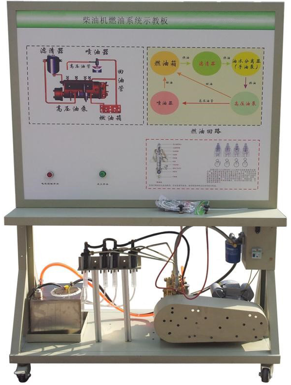 2.實(shí)訓(xùn)臺(tái)面板采用4mm厚耐腐蝕、耐創(chuàng)擊、耐污染、防火、防潮的高級(jí)鋁塑板,表面經(jīng)特殊工藝噴涂底漆處理;面板打印有永不褪色的彩色電路圖;學(xué)員可直觀對(duì)照電路圖和電控高壓共軌柴油發(fā)動(dòng)機(jī)實(shí)物,認(rèn)識(shí)和分析控制系統(tǒng)的工作原理。