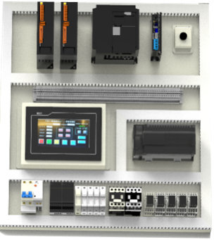 SB-815A-K01控制掛板 1. 功能:電氣控制掛板安裝于模型桌體上,采用可拆卸式斜面放置,掛板上下兩端安裝有鋁制拉手,方便掛板裝卸。 2. 掛板結(jié)構(gòu):掛板尺寸約L450mm*W600mm*H26mm,采用1.5mm冷軋鋼板折彎成型,表面靜電噴塑處理。 3. 小型中間繼電器:RXM4LB2BD DC24V 4. 交流接觸器:CJX2-0910 AC220V 5. 小型斷路器:IC65N 2P C10A 6. 熔斷器座:RT28N-32 7. 開關(guān)電源:+24V/6.5A 8. 導軌插座:EA9X310 3孔10A 9. PLC:西門子CPU1214C PLC 晶體管,14路數(shù)字量輸入10路數(shù)字量輸出,本體集成一個PROFINET通訊口。 14.變頻器:西門子G120C,功率0.55KW,一個RS485通訊口,4個開關(guān)量輸入,2路輸出。 15.保護功能:具有過流、過壓、欠壓等保護。 16.電氣控制:交流接觸器、熱繼電器、時間繼電器、空氣斷路器等組成。 |