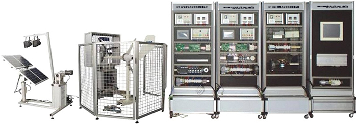 風(fēng)光互補(bǔ)發(fā)電實(shí)訓(xùn)系統(tǒng)主要由光伏模擬裝置、光伏充放電系統(tǒng)、風(fēng)力模擬裝置、風(fēng)力充放電系統(tǒng)、逆變與負(fù)載系統(tǒng)、監(jiān)控系統(tǒng)等組成。采用模塊化結(jié)構(gòu)設(shè)計(jì),各裝置和系統(tǒng)既可獨(dú)立運(yùn)行,也可組成光伏發(fā)電實(shí)訓(xùn)系統(tǒng)、風(fēng)力發(fā)電實(shí)訓(xùn)系統(tǒng)或風(fēng)光互補(bǔ)發(fā)電實(shí)訓(xùn)系統(tǒng),開展風(fēng)力機(jī)、太陽能互補(bǔ)發(fā)電、電能存儲、離網(wǎng)逆變運(yùn)行等實(shí)驗(yàn)。