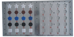 圖塊搬運(yùn)模型:多形狀物料搬運(yùn):機(jī)器人通過吸盤夾具依次把一個(gè)物料板擺放好的多種形狀物料(方形、圓形、五邊形、六邊形、五角星)拾取搬運(yùn)到另一個(gè)物料板上;圓形物料搬運(yùn):機(jī)器人通過吸盤夾具依次把一個(gè)物料板擺放好的物料拾取搬運(yùn)到另一個(gè)物料板上;物料板可以水平固定到操作臺(tái),也可傾斜一點(diǎn)角度安裝到操作臺(tái);圓形物料有兩種,一種金屬錢幣形物料,一種單面錐形物料;每個(gè)物料板對(duì)應(yīng)工位都蝕刻有物料編號(hào);搬運(yùn)形式可根據(jù)要求靈活組合,形式多樣,能滿足平面、斜面、陣列、指定編號(hào)位置、多種物料混合等要求;強(qiáng)化對(duì)機(jī)器人點(diǎn)位示教技能移訓(xùn)練。