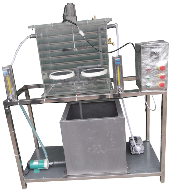 2.反應(yīng)池:尺寸550×400×500mm,優(yōu)質(zhì)有機(jī)玻璃材質(zhì),內(nèi)裝微孔曝氣盤。