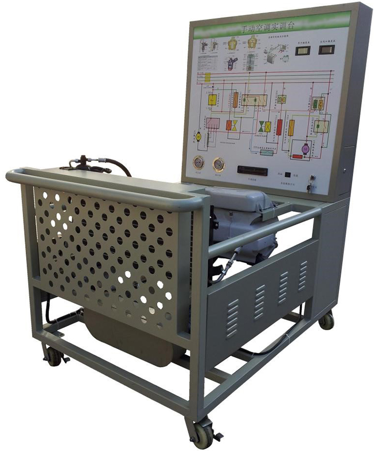 2.由三相電機(jī)做為動(dòng)力源,帶動(dòng)空調(diào)壓縮機(jī)工作。操作空調(diào)控制面板,可真實(shí)演示車(chē)輛空調(diào)系統(tǒng)的工作過(guò)程以及工作原理。